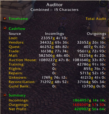 BTW, I've stopping using “spending” addons, or checking my statistics page for this very reason – the amount of gold I've spent is probably frustratingly high, I'd rather not know about it.