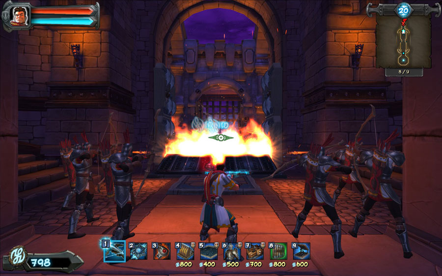 The other area in which OMD forges ahead is in its rather brilliant, non-standard level design. In typical Tower Defense, everything is gridded out in neat, orderly squares. While traps require certain precise placement, I never got the impression from any of the levels that they were build specifically to place your traps “just so.” Fluted columns and flying buttresses foil wall and ceiling traps respectively, while floor traps cannot be placed on stairs. Any time I actually saw a 2-3 “square-trap-wide” corridor, I would get excited, like I won the goddamn architectural lottery rather than feeling this was exactly where the designers wanted my traps to go.