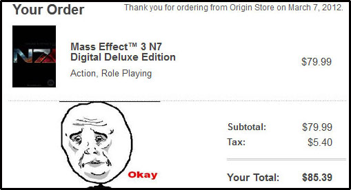 P.P.S. Has anyone mentioned Origin sucks donkey balls before? I am now having to reinstall ME3 because it originally refused to install anywhere other than on my 64GB SSD. Sorry, no, you get in the back of the D: drive like everyone else.