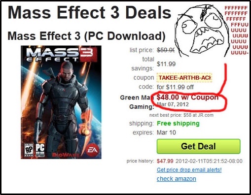 There is also tons of nerd rage about the game. On one hand people have complained that quests are too easy to do as games point you to exactly what and where things need to be done. But ME3 is different. See it actually forces you to slow down and listen to NPC conversations. In one subquest for war assets you have to let two guys finish talking to get info that then allows you to talk to a third guy and complete a side quest. It was worth 50 war points.
