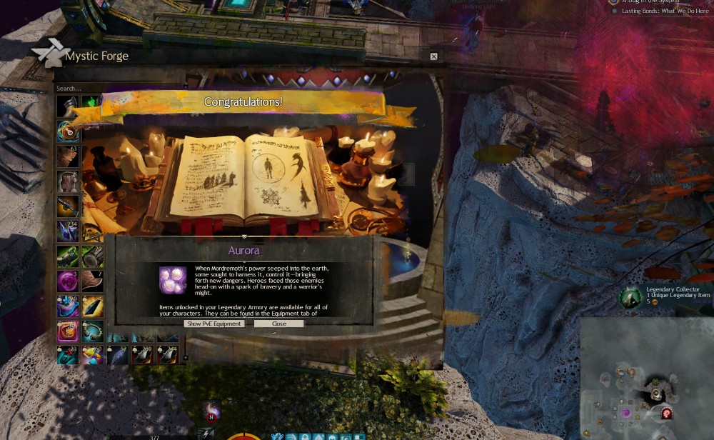 Still, there is something to be said about the satisfaction of a goal achieved, a journey completed. So much of the GW2 endgame breaks down to farming gold that it feels meaningfully different to, you know, spend it for once. All of a sudden, doing all those daily quests and meta events provide not random debris that you sell on the Trading Post, but critical items to fuel another component in the Mystic Forge.