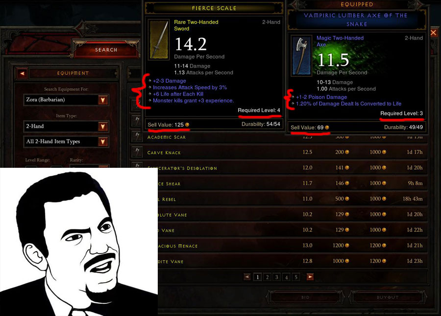 The Auction House in Diablo 3 is stupid. By which I mean dumb. Idiotic, even. Both Auction House and whoever designed it. And not because of what it may or may not do to the entire balance of the game, but because it is poorly designed period.