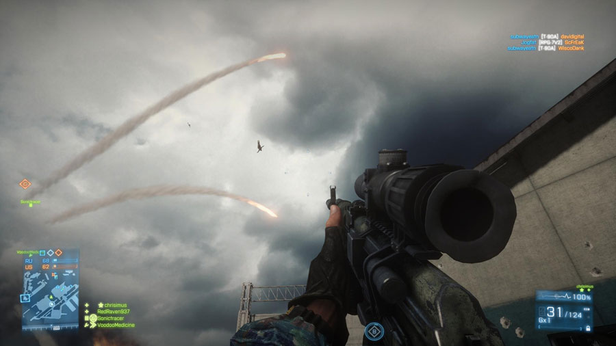 In any case, there were some concessions made in BF3 to the CoD movement – the removal of the Commander role being the largest – but trying to sneak around the backside of a tank to plant some C4 while jets dog-fight in the air above you is exactly the same. Indeed, what has been the most difficult part of the acclimation process is training yourself to ignore the wildly amazing graphics and actually find the dudes you are supposed to shoot at.