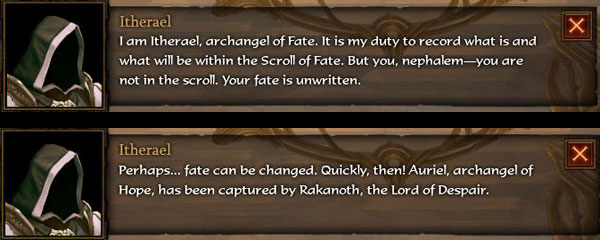Do not let that last line wash over you; let it sink in. “Auriel, archangel of Hope, has been captured by Rakanoth, the Lord of Despair.” Hope had been captured by Despair! Is there a word to describe a metaphor so superficial and goddamn literal that it becomes a mockery unto itself?