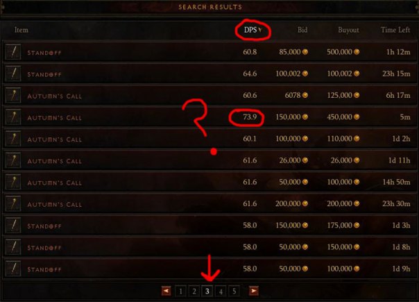 Apparently the “Sort by DPS” script only looks at at the vanilla weapon DPS without factoring in any bonuses, such as +damage or +weapon speed. Which would be one thing, if some secondary script did not compute that exact thing in the DPS column. So if you are using this method to look for weapon upgrades, make sure you check several pages in to be sure some errant +10% weapon damage stat doesn’t outclass all of the items on the first two pages. And, of course, don’t forget how your class’s primary stat will likely further affect things.