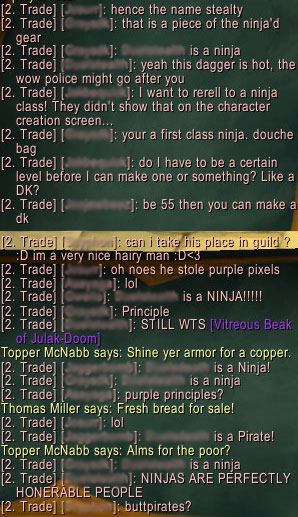 The unspoken preface to every gold blog post out there is the same as the ending to any fast food restaurant commercial: “Local participation may vary.” Surely, I said to myself, things could not be that bad on other servers. Assuming that this gentleman is a proud member of the Alliance (as all gentlemen are wont to be), I walked doe-eyed into… a mental landmine.
