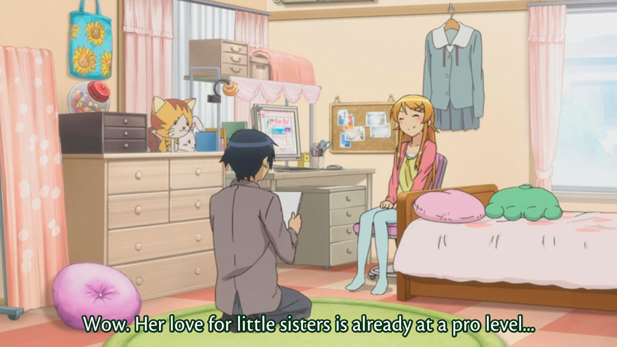 Basically, Kyousuke is the brother to the 14-year old Kirino, and they haven’t been particular close siblings in years; in fact, Kirino seems to harbor some sort of grudge or latent hatred towards her brother. After a chance spilling of her purse however, Kyousuke finds out Kirino’s secret: the straight-A track star/model is into little sister erotic games/anime in a big way. From there, Kyousuke ends up helping his sister keep the secret from their parents and her friends, eventually helping Kirino embrace her otaku side.
