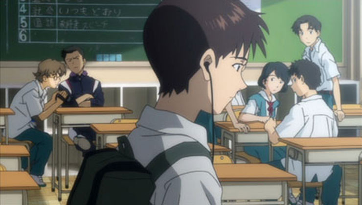 The majority of what constitutes a viewer’s emotional investment in an anime are the characters that inhabit them: their personalities, their goals, their dynamic nature. In this sense, Evangelion succeed brilliantly by introducing characters that not only behaved like real people, but also were not afraid to act like real people when pushed into extreme situations. Ikari Shinji is a 14 year-old boy who was recently called to Tokyo-3 by his estranged father, Gendo. It is made abundantly clear in the very first episode – conveyed by behavior rather than simply plot – that Shinji does not like his father, and really does not know why he answered the call. The viewer does not know anything about Shinji at this point, but they already know why Shinji answered the call: the same reason any living person answers a call by their parents. It is because of the subtle, deeply human scenarios such as the one which begins Evangelion which forges the emotional bond between viewer and character. It does not take long before one finds Shinji’s embarrassing moments are one’s own, just as one shares in Shinji’s pains, his confusions, his triumphs. Similar, if not equally as strong bonds are made between the rest of the cast in quick succession, although not as quick as with Shinji. Why is this? While Anno may have been simply casting himself in the lead role of his anime, Shinji nevertheless remains a character that just about everyone can identify with; at some point during our lives, we were Shinji – the situation and circumstances might be different but that does not change the reality of the situation.