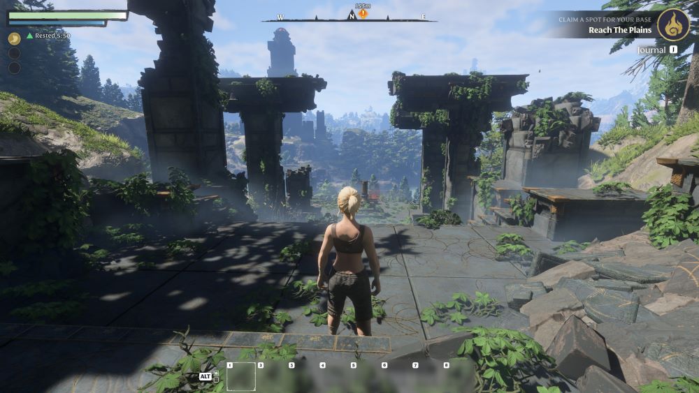 By the way, realms can only have one Minor Realm card at a time. Again, WTF mate? When I first heard about this portal system, I imagined being able to mix and match cards to craft bizarre realms like a very mountainous swamp or whatever. No Man’s Sky this ain’t. Instead, it’s just three procedurally-generated biomes with different skyboxes and min-max bonuses. Granted, there is a Trickster card that lowers gravity and shuffles up resources sources – chopping down trees give meat, skinning creatures gives ore, etc – but most everything else is rote. Safe. Sanitized. Much like with Starfield, you also end up seeing the same POIs and ruins over and over again.
