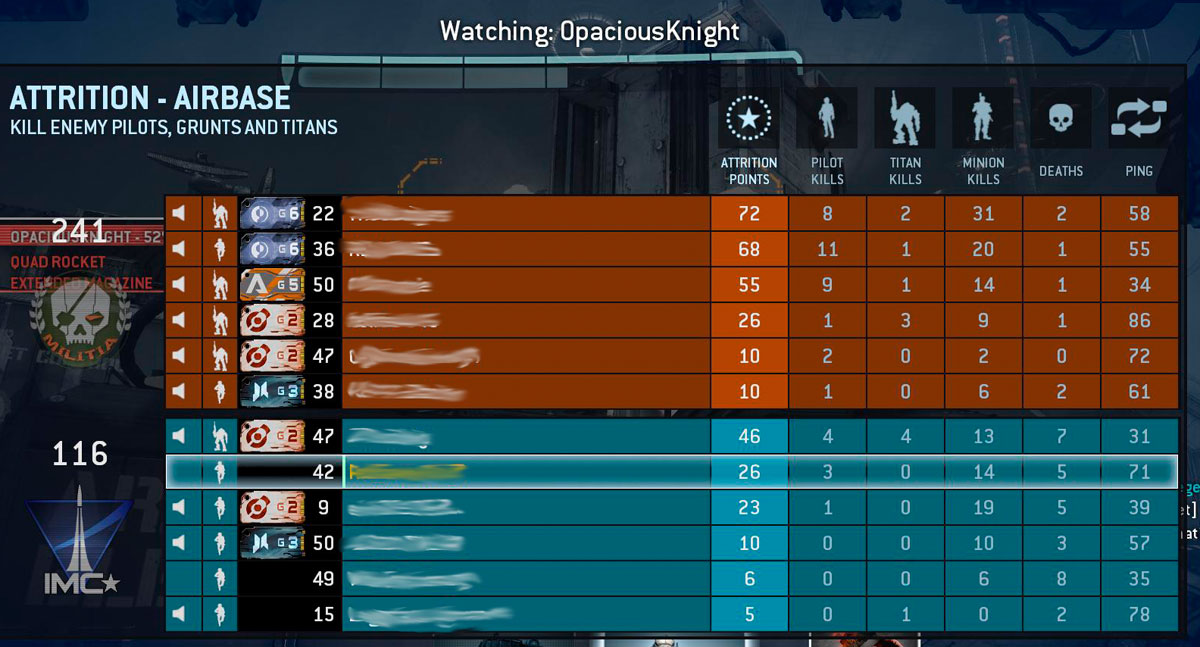 I don’t think I have ever had something like matchmaking so completely and totally ruin a game for me. I mean, queuing up as Alliance for BGs in WoW was pretty bad towards the end, but Titanfall? Holy Jesus, it’s bad. So bad that I started an Imgur album to detail it. Examples: