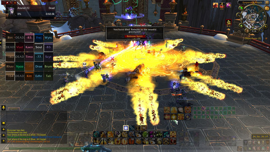 I joined a guild healer for the 2nd raid finder immediately afterwards, although the average wait time of 43 seconds was a bit off. Was killed by a combination of friendly fire and damage reflection during the first boss, but he otherwise went down quickly. I managed to avoid falling to my death during Elegon (thanks Icy-Veins!), but was killed by an add the 2nd tank never picked up; that will teach me to do something other than tunnel the boss. The third boss… made little sense. I spent a lot of time killing adds, as I could not quite understand what was up with the Devastating Combo thing other than I must have been doing it wrong. Eons later, the bosses died.
