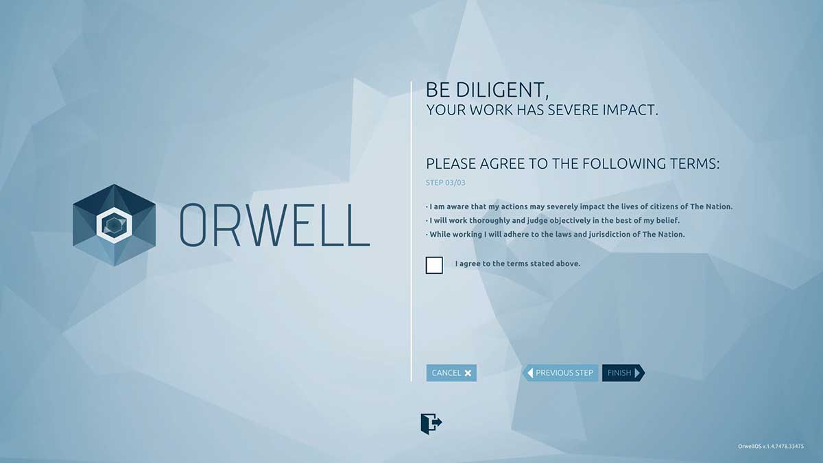 There is no option to just end the day, or move forward with the information you already have. I suppose it would be more frustrating to basically soft-lock you out of finishing the game at all if you end up missing a crucial bit of information. Nevertheless, Orwell felt like it existed between a visual novel and a Hidden Object game, the latter being a hypothetical one in which you could “lose” by clicking on the wrong thing.
