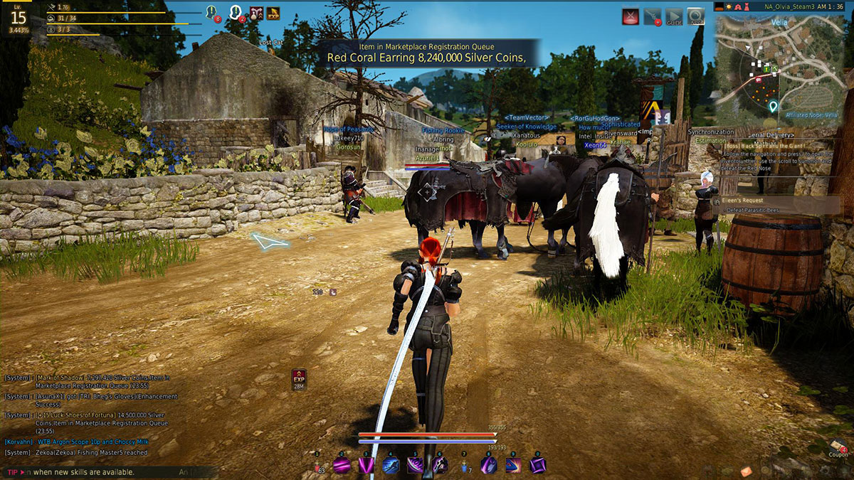 One factor that is going to limit my playtime right away is the garbage localization and questing. Quests are quests, but Black Desert has discovered a way to make them even less interesting. For most NPCs, you have to click on a Quest tab in a menu to bring up their quest, then they have two poorly-translated lines per screen to convey the information, and while they are “talking” they spout off their idle dialog that has nothing to do with the words on the screen. I suppose I shouldn’t expect much more from a game with an “auto-run to quest objective” feature built-in, but it’s a bit disappointing nonetheless.