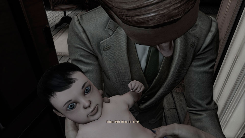 Let us pretend for a moment that the ending makes perfect sense, there are no plot holes, and everything is wrapped up with a neat little bow. Hell, let’s pretend the ending is even happy, despite the fact that Booker is still a murdering, gambling, union-busting alcoholic single father with enough debt to legitimately consider selling his own daughter to the first person who opens a checkbook. And let’s further assume that he retained the memories of all that he accomplished in the game, perhaps giving him an impetus to try and set everything right instead of dropping baby Anna off in a basket at the closest orphanage.