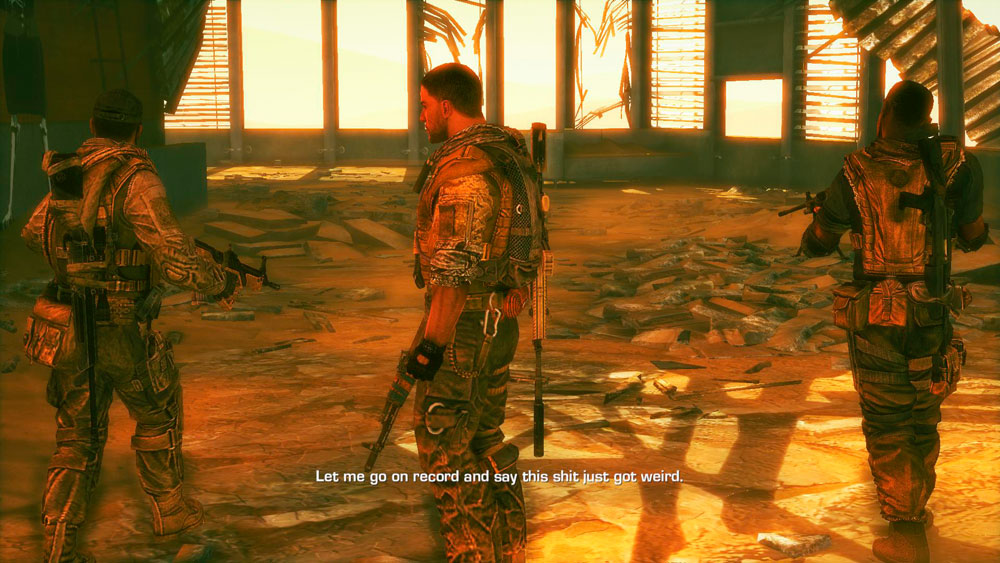 Spec Ops: The Line is an over-the-shoulder cover-based military shooter that seeks to subvert the tropes of its genre. You control Captain Adams, tasked with commanding your two Delta Force squad mates in search for what happened to Colonel Konrad and the rest of the 33rd Battalion. The search leads them into the ruined city of Dubai, which appears to have devolved into anarchy after a series of epic sandstorms cut it off from the rest of the world.