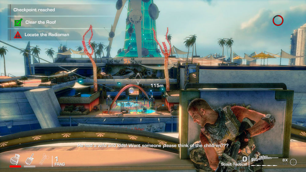 …at least up until I kept encountering these predictable boss characters, with their predictable face armor which takes a half-dozen sniper rifle rounds to remove.