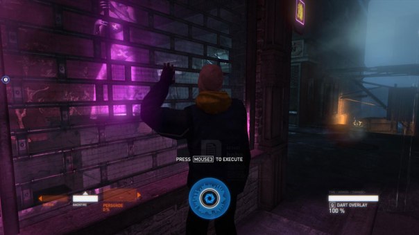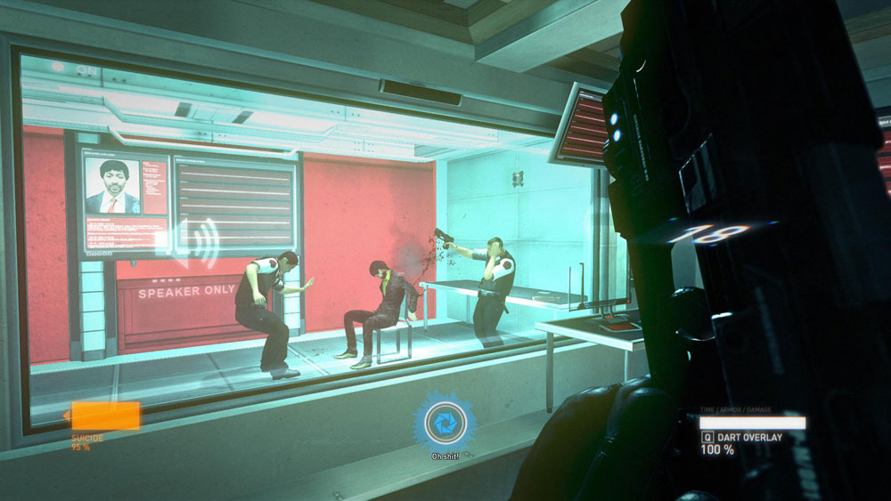 What is particular strong however, is the gunplay. Syndicate does a great job of making you feel like you are running and gunning in a Matrix-esque movie, including having access to overpowered abilities without making you feel immortal. As the plot develops, you eventually gain access to three main “Breaches”: Suicide, Backfire, and Persuade. Suicide makes the targeted enemy shoot themselves in the head or pop a grenade if they are near others. Backfire causes enemies to fall down (possibly out of cover) and take additional damage for X seconds. Persuade makes an enemy fight on your side for X seconds, before shooting themselves at the end of the timer. Each of these abilities recharge only when you kill enemies, ensuring that you don’t just hide in cover until your cooldown comes back up.