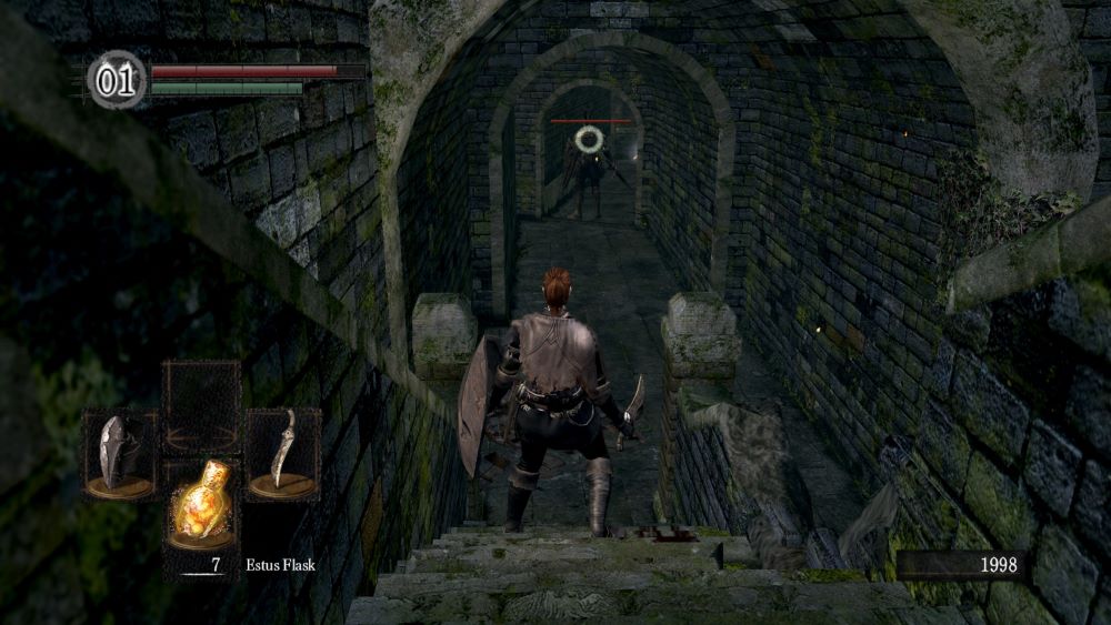 After spending mumble-mumble hours farming in the Undead Burg zone around the Bonfire, I started pushing some more progress. Dead bodies that have loot have a sort of white glow around them, and the fact that you retain items upon death naturally leads one to the occasional questionable strategic decision. Do I engage this clearly-powerful sub-boss dude, or try and run past him and loot the goods?
