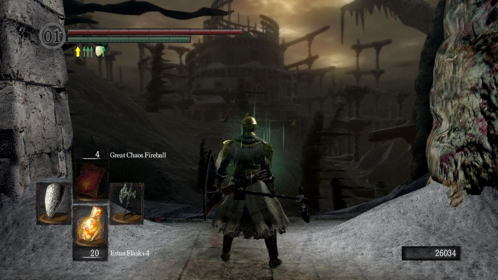 The third crack came from the Stray Demon in the Asylum. Technically, this was the very first boss that I died to and was unable to retrieve my souls, but whatever. After struggling (read: dying) for quite some time, I finally had to look him up a bit. What was I missing? I knew to avoid being near the pillars as their destruction seemed to remove 95% of my HP. But his fire(?) AoE attack took 55% of my HP and seemed unavoidable, and applying Flash Sweat (reduce fire damage by 45%) did nothing. What was I missing? As it turns out: nothing. Being behind the Stray Demon is supposed to protect you from the AoE but the positioning is janky. Near the tail? Attack goes through his legs. Too far away from his legs? Attack mysteriously wraps around like a backdraft or something. The true answer is… you can block most of the damage with a shield. Ah. Just press L1 and this AoE fire-but-not-fire attack that wraps around everywhere just zoink, deals minimal damage.