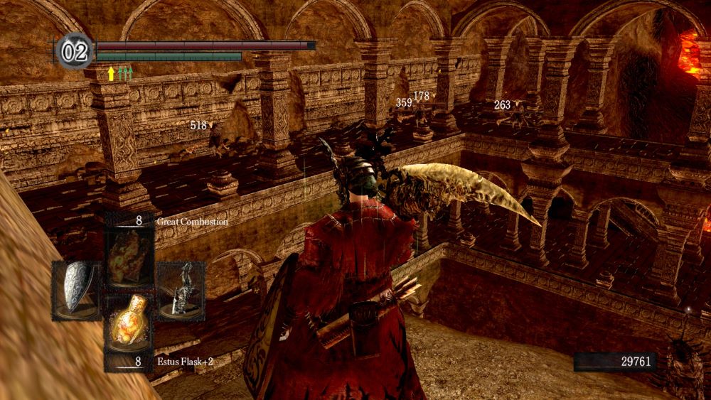 Time will tell how long I stick around farming in the immediate Bonfire area. “Until you get bored” is not a particularly healthy target, but it also feels silly to not make a few more circuits when you can gain levels within 5-10 minutes. Then again, the farm option would still be there if I just plow forward until hitting a brick wall. Hmm.