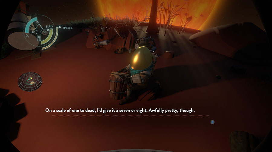 Everything was great for about two-thirds of the experience. Once you get the controls down, you can wake up from the beginning of the time loop and be orbiting any planet in the solar system within minutes. The impending supernova did grate on my nerves a few times, as it always seemed to occur when I was 90% done exploring a specific location, requiring me to make a return trip to finish up and then suiciding so as not to limit exploration time somewhere else.