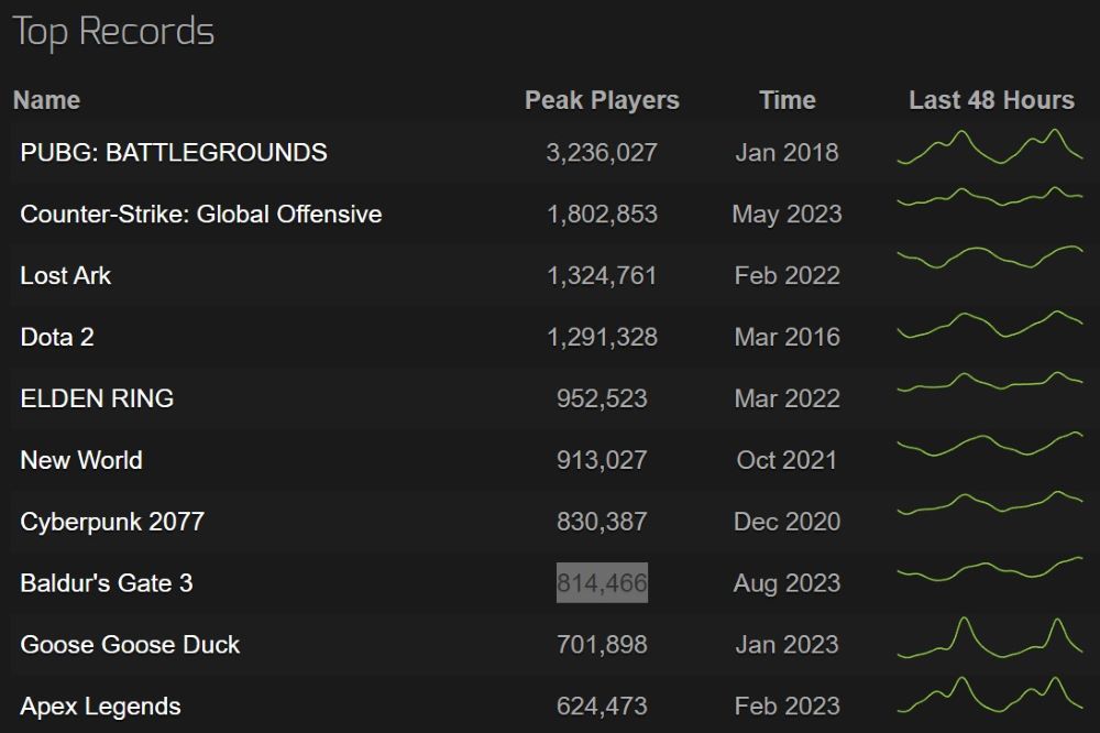 First, let’s acknowledge the obvious: Baldur’s Gate 3 (BG3) is already a smash hit. As of this post, Steam indicates a peak of 814,466 concurrent players, which makes it the 8th out of the top 10 of all time. Concurrent players doesn’t really mean much in a vacuum, but it is an impressive feat given its peers on that list. It makes me wonder if, like Elden Ring before it, BG3 will generate a renewed interest in an otherwise niche genre that no longer feels like such.