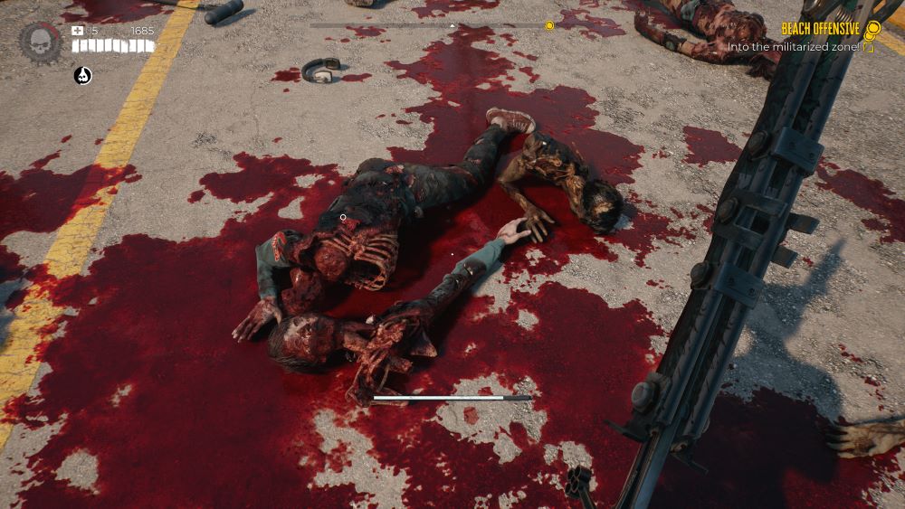 Is the game gory AF? Yep. Does it matter even a little bit? Nope. The specific problem is that there are so many zombies attacking you at any given time that you are unlikely to appreciate the fact that their eyeball is swinging outside its socket in a realistic fashion or whatever. There’s no mechanical benefit either, as even a zombie bereft of both arms will still try to headbutt/bite you. Dead Space this ain’t. I suppose this does contribute to the weight behind melee attacks and how satisfying it feels, but honestly, I would trade all of it in a heartbeat for more ragdoll-esque physics instead. Zombies tripping over each other, falling on couches, bumping into walls, etc, is infinitely more immersive to me than their jaw hanging half off or ribs flying everywhere. I saw that in Fallout 3 death animations in 2008.