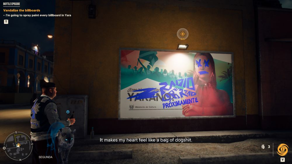 Finally, the overall storyline and antagonists were weak as shit. This is perhaps the most damning bit to a Far Cry game. The story follows Dani as they go from attempted refugee to guerilla mastermind, but there’s a level of Far Cry shenanigans that just never develops. There are three major regions you unite by taking down the Castillo lieutenants stationed there, but only one of them has any personality whatsoever. Castillo himself is played by Giancarlo Esposito, but he must have been charging per line of dialog because he has more screentime on the box art and about as many dimensions.