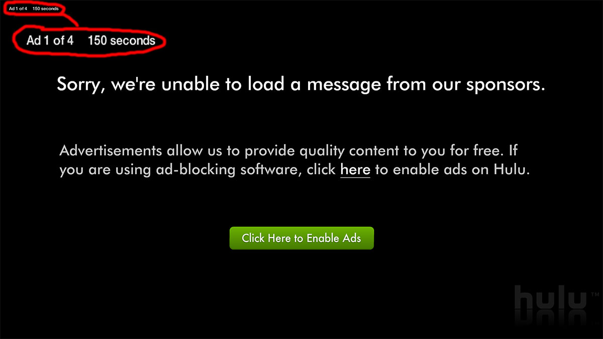 Like CrunchyRoll, FUNimation has a Premium version that supposedly removes the ads. Given how much shit I’ve heard about Hulu, and how Hulu expressly states that “†Some shows will still serve ads to subscribers,” I have little inclination to believe them.