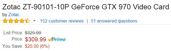 The amusing thing is I finally felt ready to pull the trigger, after all my prior dithering. The final push? Best Buy had the Zotac GTX 970 version up for $329.99 with a price match guarantee… and Amazon had the same exact model for $309.99. Sweet. So I’m going to price match the $309.99 and then whip out my trap card 10% off coupon. I balked previously at graphics cards that barely moved on price, but getting one at $279 is another matter entirely. Plus, the free game code included this time around is Metal Gear Solid V, which is actually something I want to play. So, technically, I’d be getting the video card for less than $250.