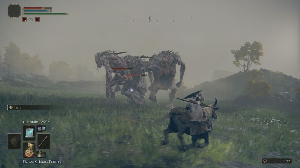 At the same time, the game feels entirely different. Dark Souls offered freedom of a sort once you got to the first main area, but nothing like Elden Ring. After unlocking three bonfires Sites of Grace, you get a double-jumping magical horse that you can call at a whim and even engage enemies while mounted. As a spellcaster, there is essentially zero downside for me to not be mounted 100% of the time. Your foes can knock you off the horse, but the mounted shenanigans fundamentally change how I approach open-world combat. I never felt comfortable just running past everything in Dark Souls, but here? Anything you actually engage is on purpose.