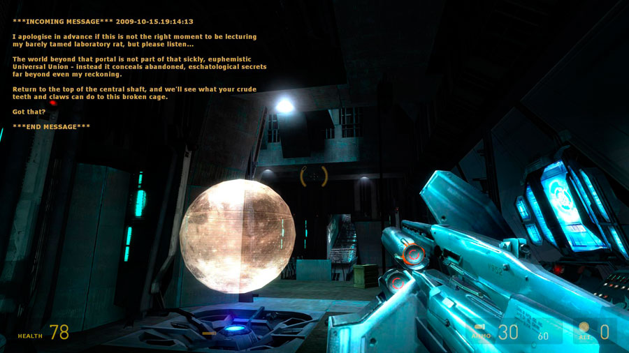 In my continuing efforts to reclaim hard drive space and knock out some more of my Steam backlog, I booted up MINERVA: Metastasis. For some reason I thought this was the user mod for Bioshock I remember hearing about back in the day, so I was quite surprised to find it was a Half-Life 2 mod. Still, at 5+ gigs, I figured it was about time to see what’s what.