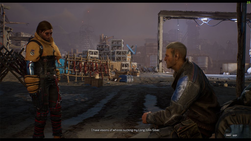 First, the story. Or more specifically, the main character’s “Renegade Shephard with Charisma as a Dump Stat” schtick. I’m not certain if the writers were trying to make the main character into a badass anti-hero and overshot the mark, but the end result is so bad it loops back around to good. I kept expecting to see an attempt on character growth, or becoming a leader, or any of the other tropes in the genre, but nope! Your character basically doesn’t give a shit about hostages, is painfully awkward when NPCs share their trauma, and is content shooting first and never bothering with questions.