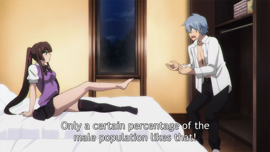 Strike the Blood is a sort of disguised, supernatural harem action anime. The main character is a high school student, Kojou, who has been transformed into the “4th Progenitor,” a sort of super-vampire who could upset the balance of the other three super-vampires. In response, various human and supernatural parties try to court his attention, keep an eye on him, and/or try and kill him. Did I mention this all this takes place on a man-made island way out in the ocean, made structurally sound by magic and ancient relics? And a significant portion of the population are pseudo-demons?