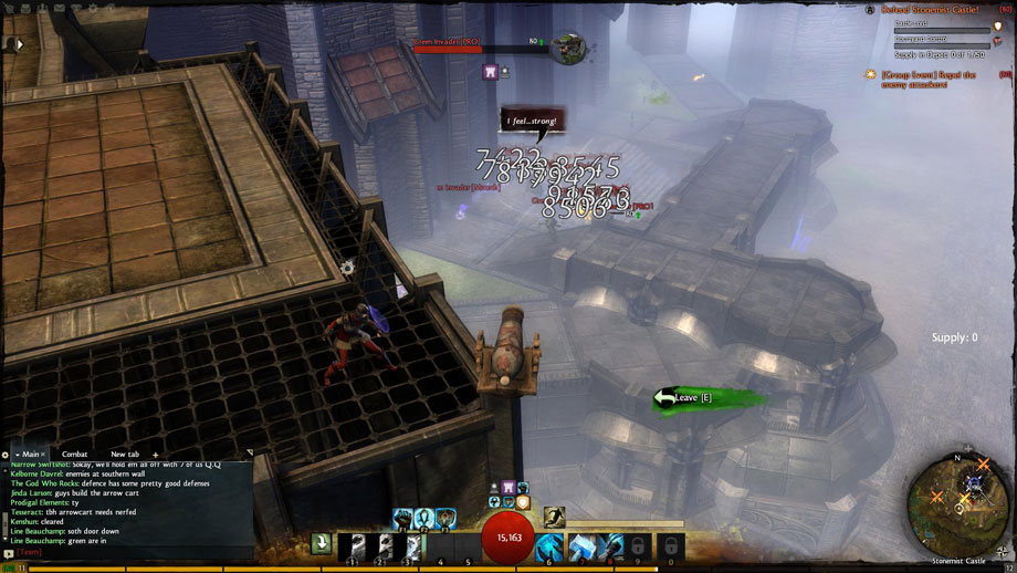 Final note: you are leveled to 80 while in WvW, but you only get the equipment and skills you zoned in with (there are vendors and banks inside though). This wasn’t a problem in the beta, of course, but I can imagine WvW being next to impossible against any group of actual level-capped players (and their level 80 gear). I suppose you could be on Supply duty – run to set of boxes, click, run back to structure that needs repaired, click, repeat – or even potentially manning the cannons, but it seems bizarre to make such a point about leveling someone to 80 only to make gear matter.