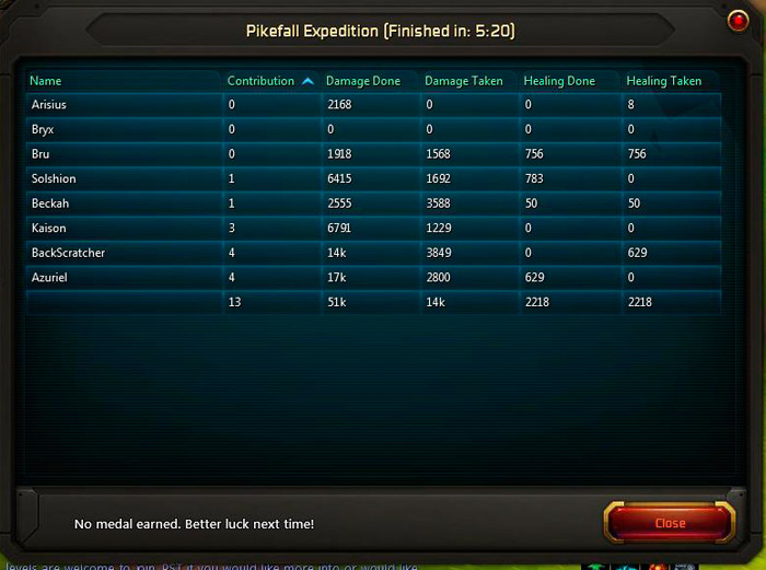 After waiting about two minutes, the NPCs respawned and the Event began again. So we collected boxes, dropped some mining bots, killed some mobs, spawned the Elite, and then killed it. Aaaaaaand nothing. Literally nothing dropped at any point. There wasn’t even an indication that the event ended, other than the NPC camp disappearing in a cloud of dust. We eventually figured out to click on the Public Event text in the sidebar, and I was presented with this screen:
