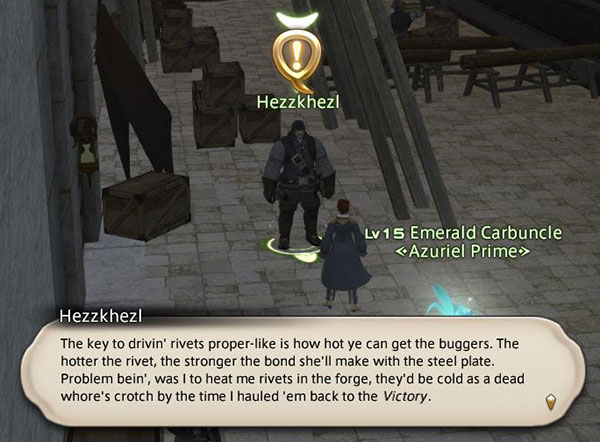 Of the FF14 sidequests I did before focusing exclusively on the MSQ, 99% of them were filler. At the same time, I would have been sad to miss the ole “cold as a dead whore’s crotch” exchange: