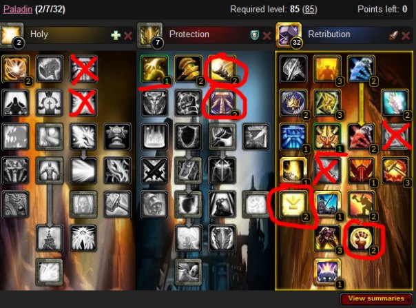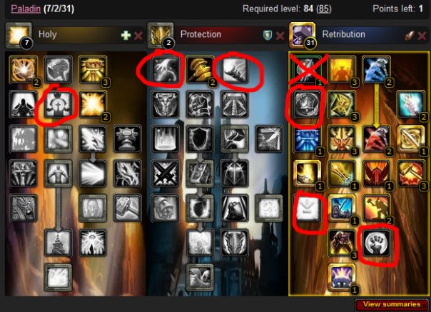 If you look up the EJ builds for your spec, chances are you will actually see where the Blizzard designers tried to give you choice in Cataclysm’s revamp. Here is the EJ build for a PvE Retribution paladin: