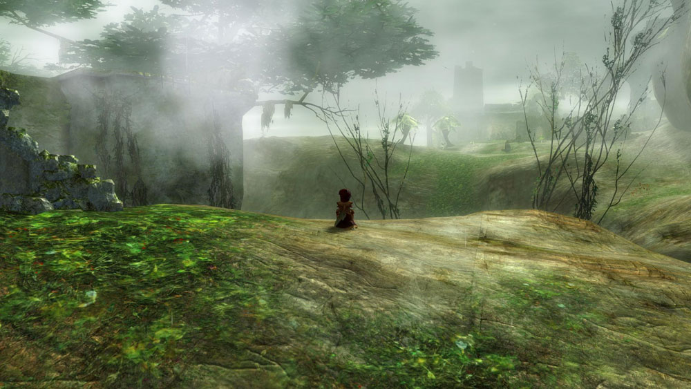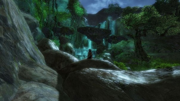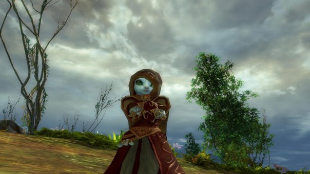 I can see the sort of watercolor schtick being an artistic preference, but more than the looks, the game does make you feel like you are moving in 3D space. I could (and did) climb that little rock wall thing on the left, for example. Skyrim still has GW2 beat, but they both share that sense of space and scope that encourages a “let me go over there… because I can!” feeling.