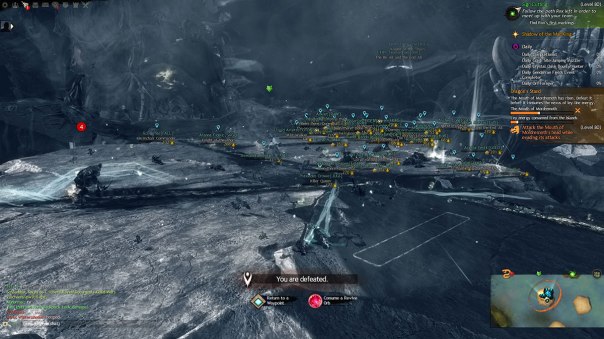 Indeed, I was recently wandering around unlocking stuff when I got swept up in a Mordremoth battle. This is technically the big dragon you are trying to kill in the expansion, so it was a bit weird engaging it before I had even reached the point story-wise when that was possible. The fight was crazy expansive, and I was forced to learn the mechanics on the fly, as it featured many instant-death mechanics. Ultimately we were successful, and I got a lot of shiny loot that was immediately thrown in the garbage, because Good Game Design.