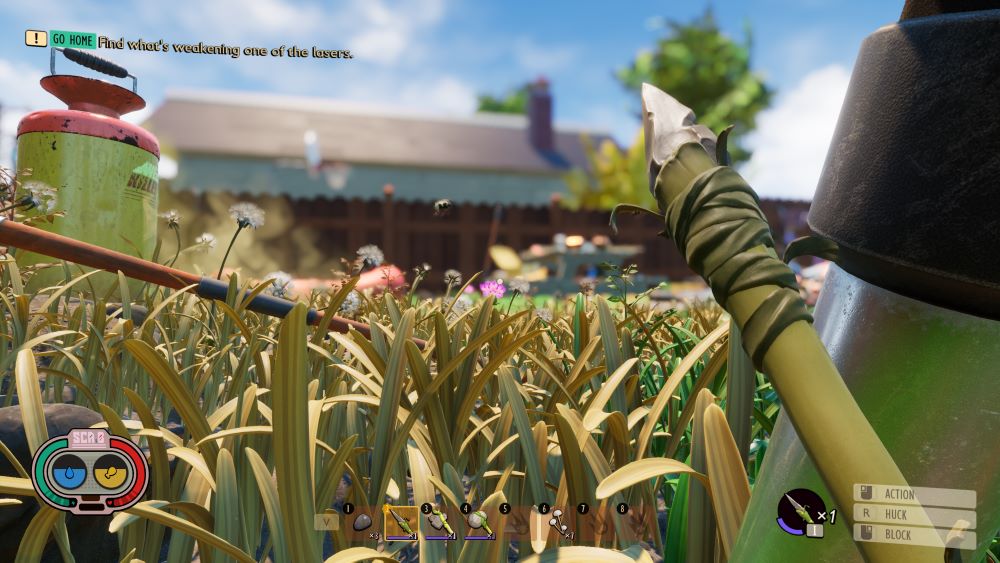 And this is kinda what gets me about Grounded. The setting, premise, and story do not match the gameplay. Teenagers from the 90s shrunken down and running around their backyard for flimsy story reasons leads you to believe this is a game that might appeal to younger players. On Normal difficulty, it most decidedly is not a game for younger players. Or older players that may be reflex-impaired. Every time I think I’m hot shit crushing bugs left and right, I take two unblocked hits and I’m sprinting away chugging healing potions. And this is in a game where I can hit Save after every encounter!