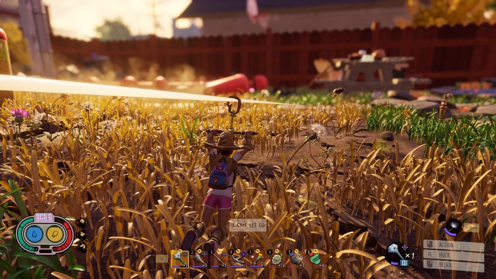 In games like ARK, there’s no Perfect Blocking a T-Rex bite. But, you can still take out a T-Rex through clever terrain and/or structure use. In Grounded, most enemies ignore most terrain that otherwise slow you down, e.g. grass stems. And even if you happen to engage from on top of something they cannot reach, your (early) ranged attacks with the bow don’t deal much damage. Indeed, since you cannot block while using the bow, the game seems to discourage any realistic use of it outside first-strike or fleeing bug scenarios. “What about flying bugs like Mosquitos?” Yeah, sure, try to get a few arrows in. But you will 100% die if you don’t perform Perfect Blocks with a regular melee weapon of some sort, even if you have the clunkiness of having to toggle between it and the bow.