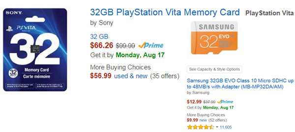So there I sat, fuming, fingers ready to raise the black flag out of spite. Seriously guys, Sony’s proprietary bullshit is over five times more expensive than a microSD card! No matter how cheap a deal I could get on a Vita, that memory card would just erase all of the gains by itself. What would the price of one of those be even in a Toys-R-Us fire sale? $40? $30?!