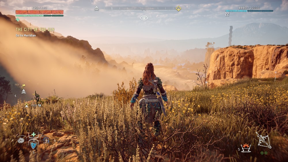 Instead, I started approaching the game as the hunter I was supposed to be. And the game got worlds better. Unlocking the ability to set down elemental tripwires and such certainly helped, but even before that I started approaching from cliffs, and using other terrain to my advantage when possible. Did I still occasionally get one-shotted and lose 20 minutes of progress due to the annoying checkpoint system? Yeah. But I also realized that I was one-shot because I got cocky and wanted to finish off one robot instead of retreating once I aggroed the second. It all sort of reminded me of PvP games and the adage that if you died with cooldowns available, it was your own fault.