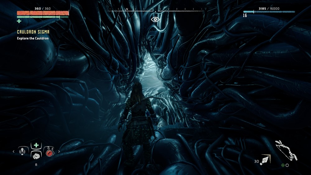 Also amazing? The visuals. Yeah, I have a beefy PC so I’m playing a max settings and everything, but the visual direction itself is spectacular. Running around in the machine bases in particular has been a treat. Some of the larger robots are extremely intimidating, even after you are experienced enough (and have the proper tools) to take them out with ease. Plus, as before, even “routine” encounters with robots you have killed dozens of times can quickly turn against you if you aren’t careful. Any time I see a few Snapjaws (robot crocodiles) swimming around, I say “Nope” and go a different way.
