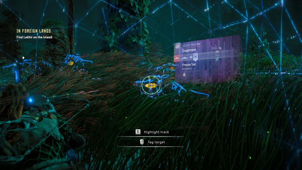 What I was not particularly expecting was the general level of fidelity to the premise. You really are walking around with a bow, arrows, and a spear. After dying a few times on Normal difficulty (!!) in frustrating ways, I took a mental step back. Although things certainly look like a sort of Action Adventure game, this was not Grounded wherein you Perfect Block the attacks of a house-sized spider. You are hunting machines made of metal – you cannot hope to parry with a spear. Of course, you do have a dodge roll with infinite i-frames, but nevermind.