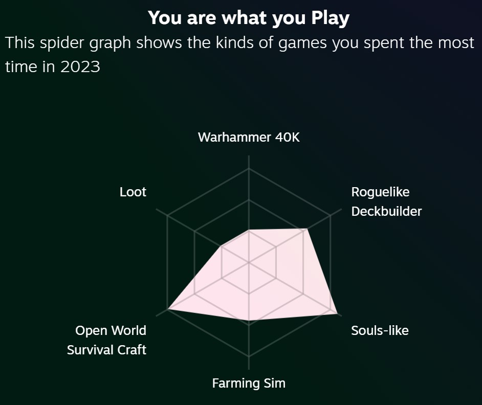 I just said that I don’t include previously-played games, but I think +86h on Cyberpunk 2077 deserves a mention. Aside from that, Dead Island 2 was the only other Epic game I played this year. which makes things all the more ridiculous that I have rather religiously acquired every free game offered each week.
