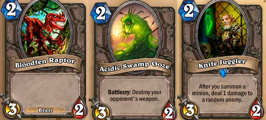 Being a Beast is not as powerful as the other two cards, unless you are playing a Hunter Beast deck. But the more damning implication, IMO, is how the above cards sort of imply that a 1/4 for 2 would be balanced. Or a 2/4 for 2 mana, even. We already have 3/2s with an ability, 2/3s with an ability, 1/3s with a huge ability for 1 mana (Priests, seriously), so a 2/4 for 2 isn’t outlandish rules-wise. And yet it would be crazy OP, invalidating a huge swath of two-drops. The context of the environment is as important and possibly more so than the strict card power rules.