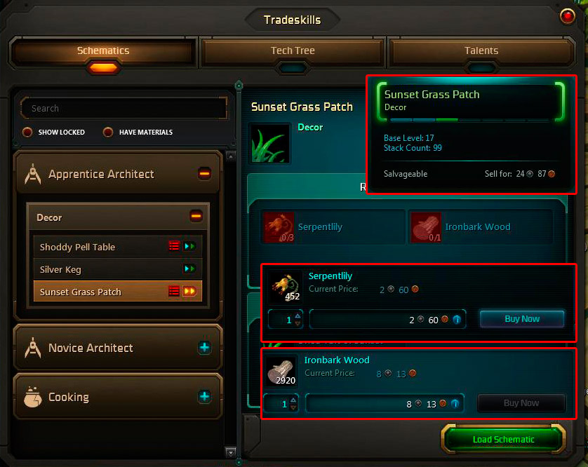 There was a huge Architect nerf the day after I posted my guide, which reduced the vendor price of Decor by 40% (I did update it though). Apparently my bulletproof Challenge strategy was small potatoes compared with people earning +20p by vendoring decor crafted with below-vendor prices of ore/wood dumped by gatherers. On the one hand, I understand the need to not break the economy. On the other hand… 10 CREDD is $150 that I just missed out on.