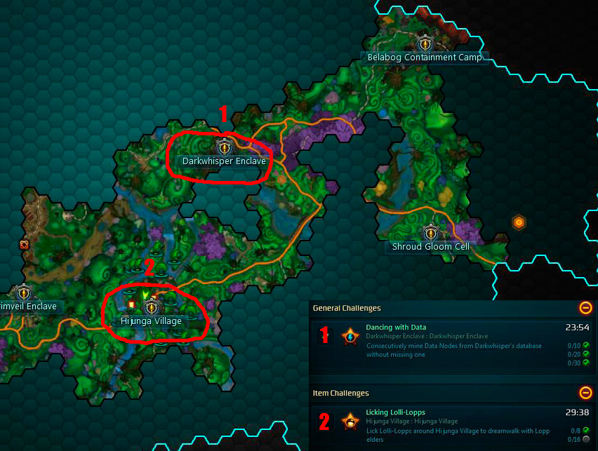 - Licking Lolli-Lopps: Click the mushrooms. This is actually a bit harder than it sounds, as you receive a low-gravity buff and have a tendency to lose all forward momentum when running around. There are some mushrooms higher up in the trees, but they’re tricky. High chance of out-right failure if there are other people doing this one.